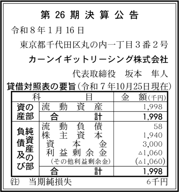 | 会社名 | カーンイギットリーシング株式会社 |