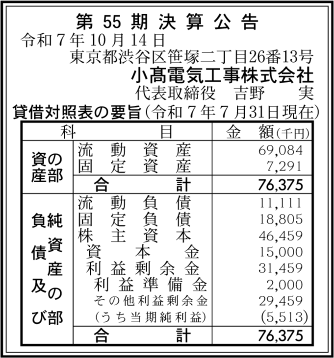 利益剰余金 | 3,145万9,000円 (+21.25%) |