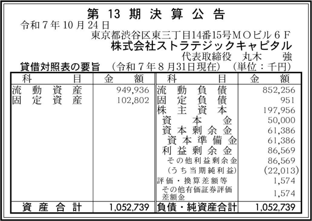 | 会社名 | 株式会社ストラテジックキャピタル |
