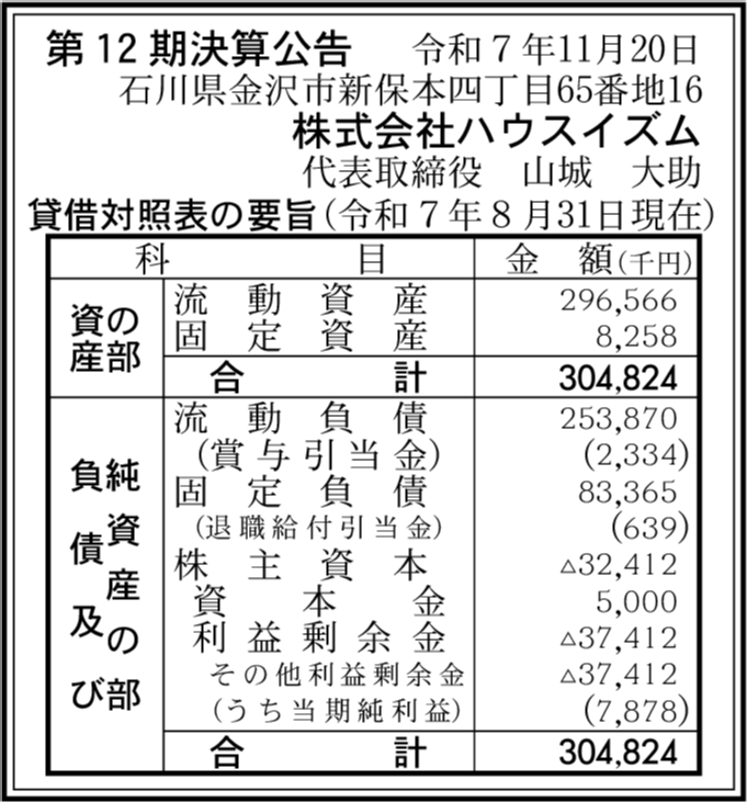 株式会社ライフライン 石川県金沢市 【2025年8月期】 |