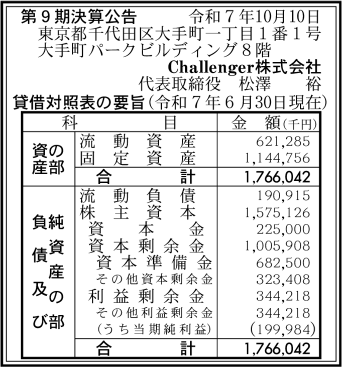 Challenger Japan Holdings株式会社 東京都千代田区 【2025年6月期】 |