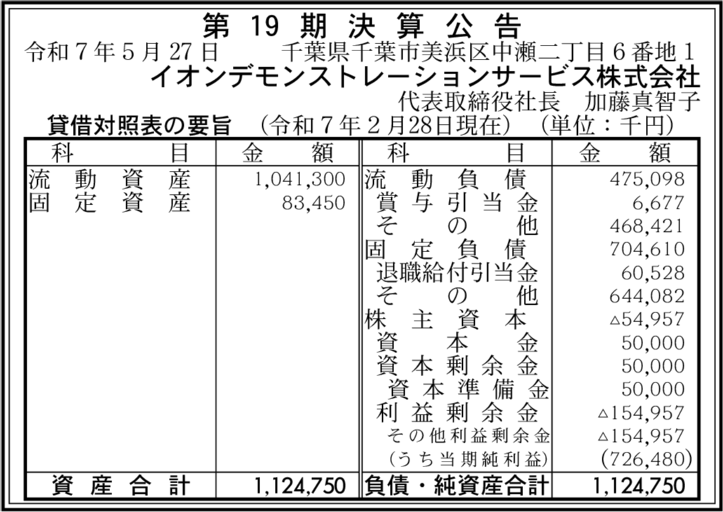 | 会社名 | イオンデモンストレーションサービス株式会社 |