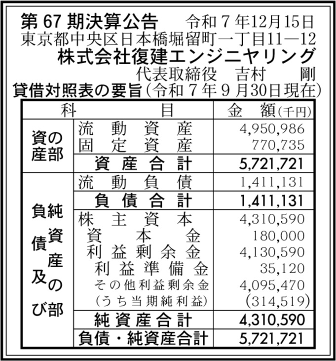 | 利益剰余金 | 41億3,059万円 (+7.73%) |