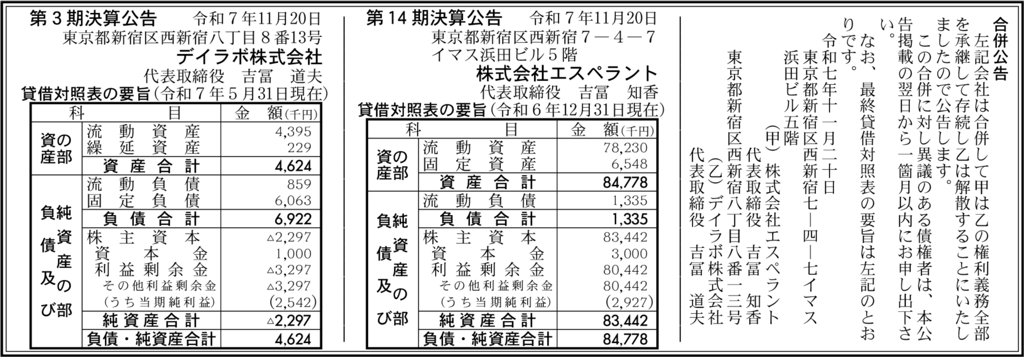 株式会社エスペラント 東京都新宿区 【2024年12月期】 |