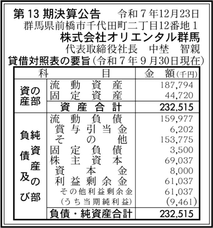 株式会社昇栄 群馬県前橋市 【2025年9月期】 |