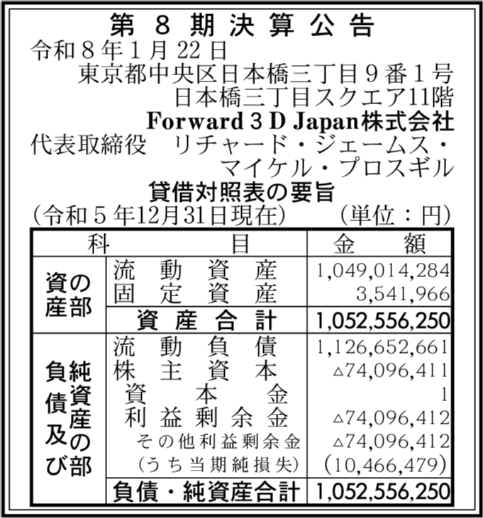 | 会社名 | Forward 3D Japan株式会社 |