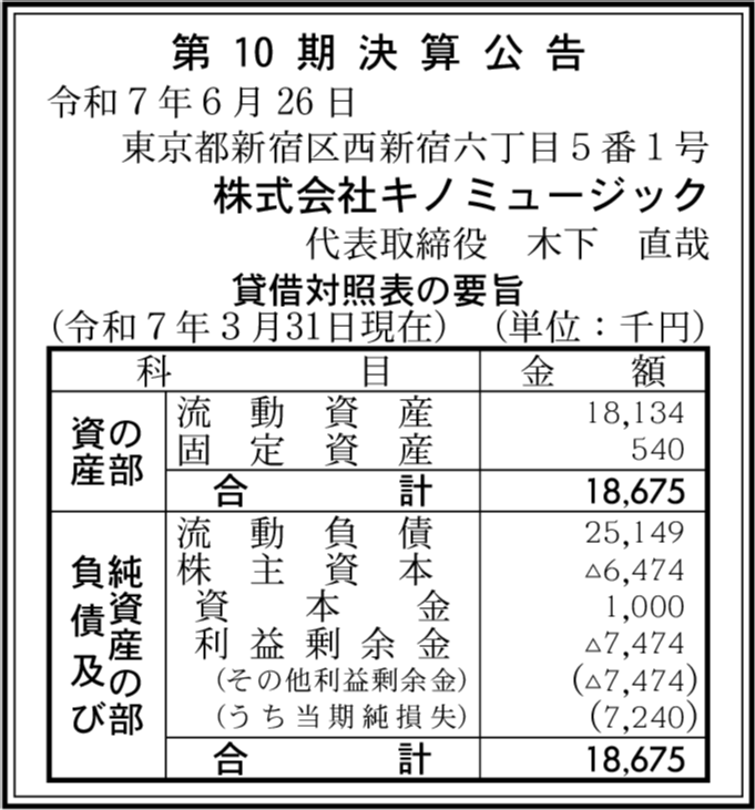 株式会社キノフィルムズ 東京都新宿区 【2025年3月期】 |