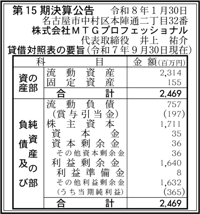 | 会社名 | 株式会社MTGプロフェッショナル |