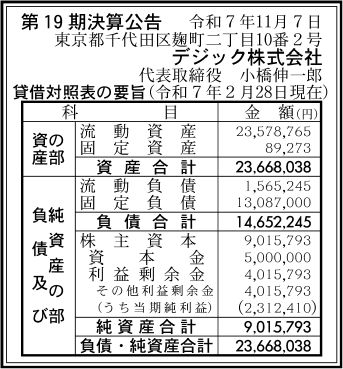 株式会社キカリ 東京都千代田区 【2025年7月期】 |