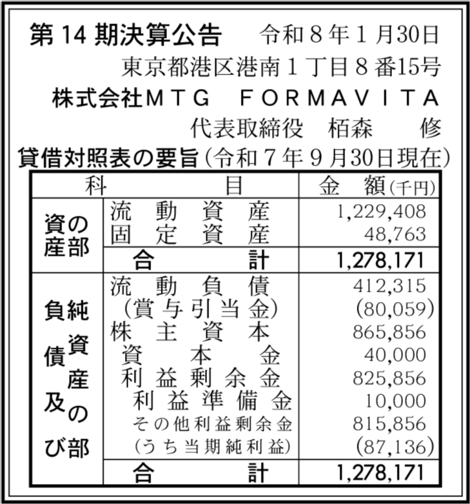 株式会社MTG FORMAVITA 東京都港区 |