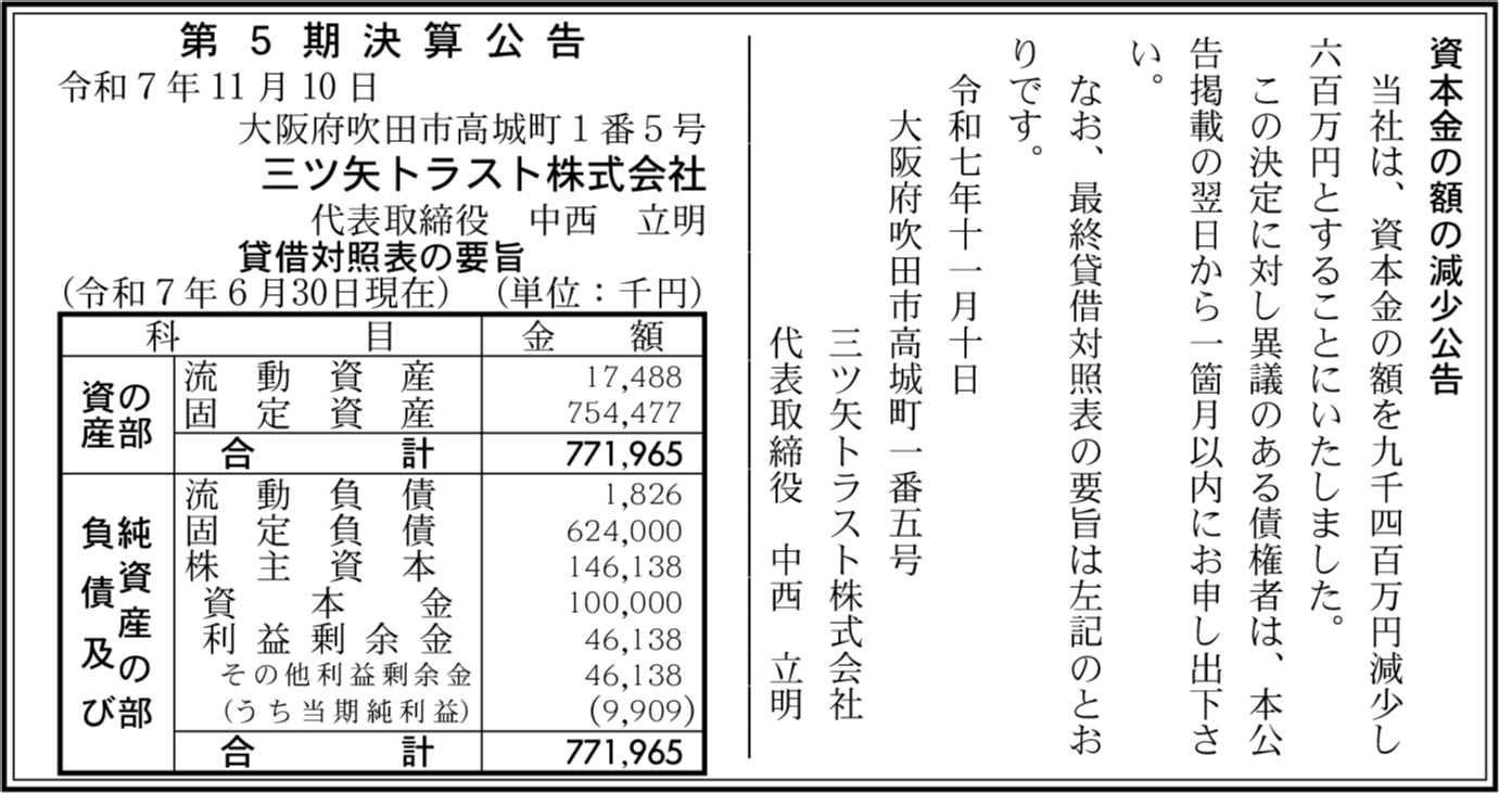 | 会社名 | 三ツ矢トラスト株式会社 |
