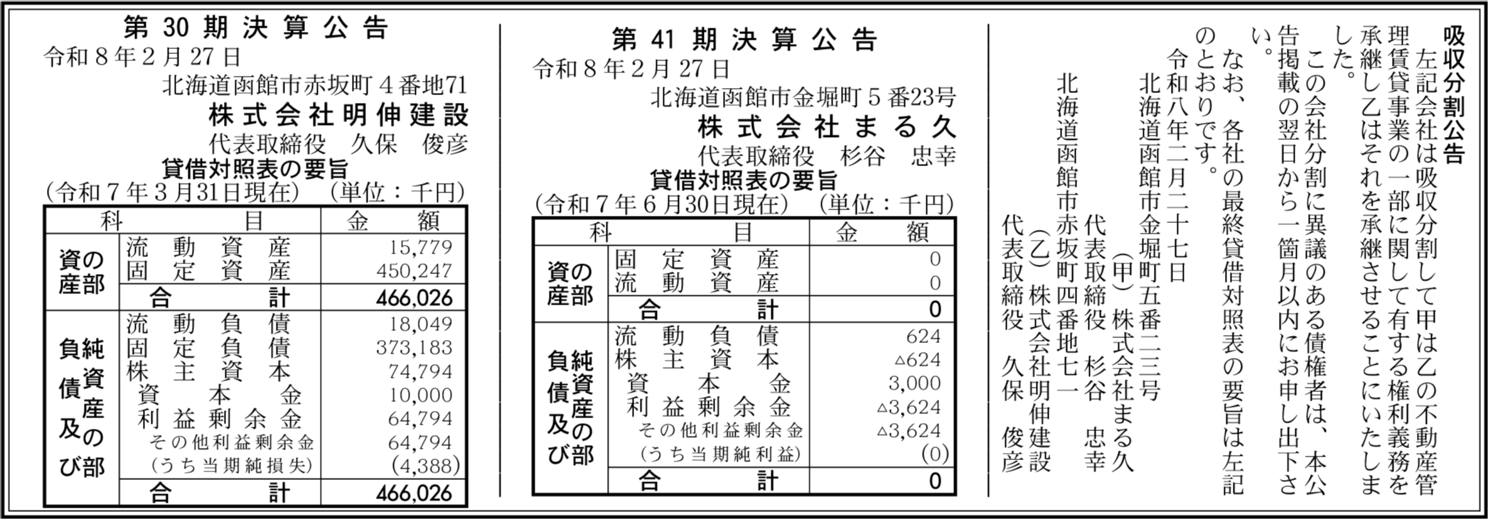 株式会社明伸建設 北海道函館市 【2025年3月期】 |