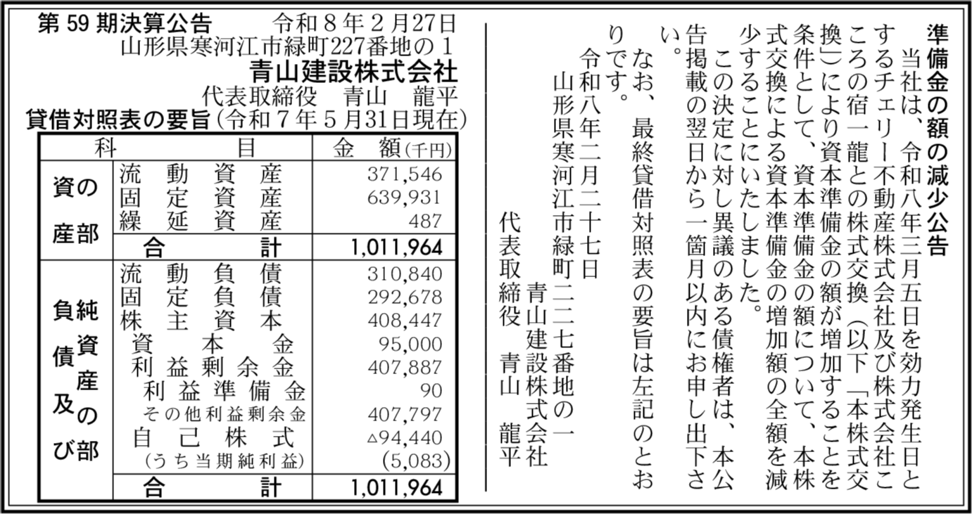 | 会社名 | 青山建設株式会社 |