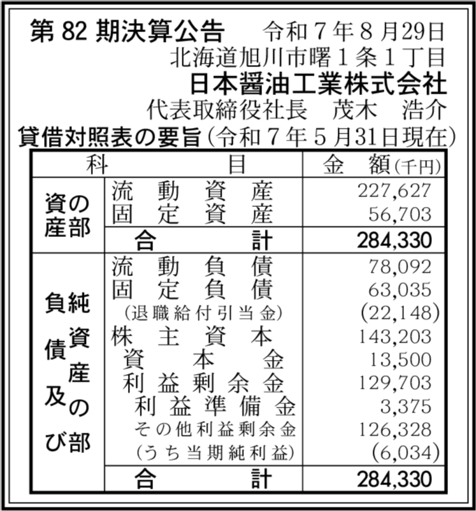 株式会社北海紙業 北海道旭川市 【2025年3月期】 |
