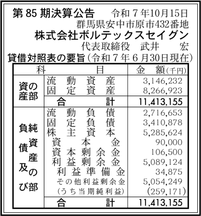 株式会社ボルテックスピース 群馬県安中市 【2024年6月期】 |