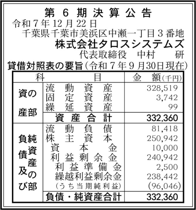 | 利益剰余金 | 2億4,094万2,000円 (+20.53%) |