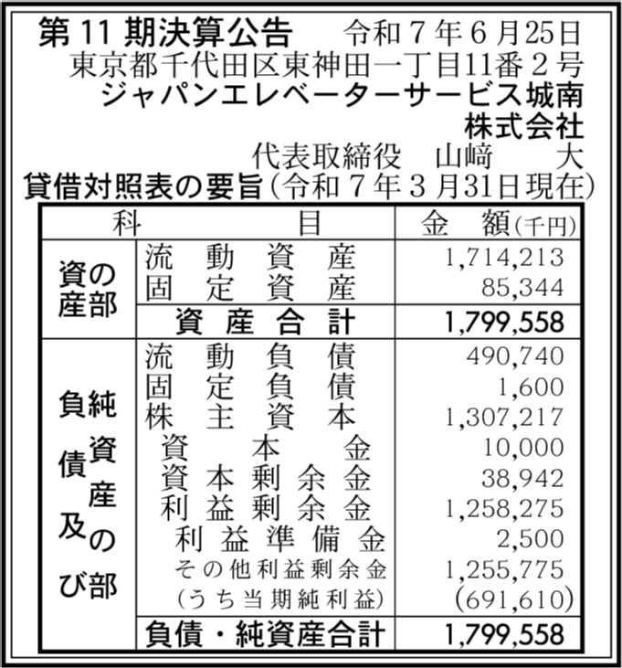| 会社名 | ジャパンエレベーターサービス城南株式会社 |