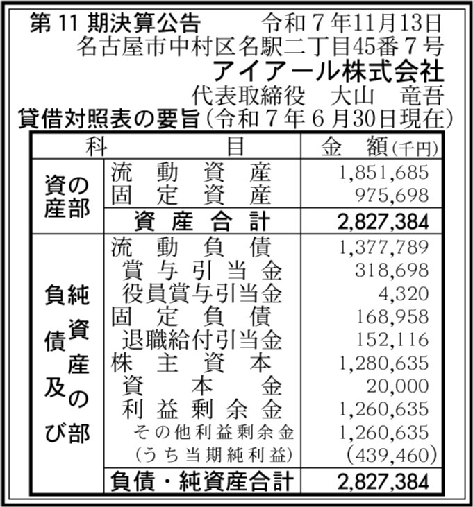 | 利益剰余金 | 12億6,063万5,000円 (+53.52%) |