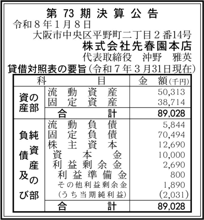 | 会社名 | 株式会社先春園本店 |