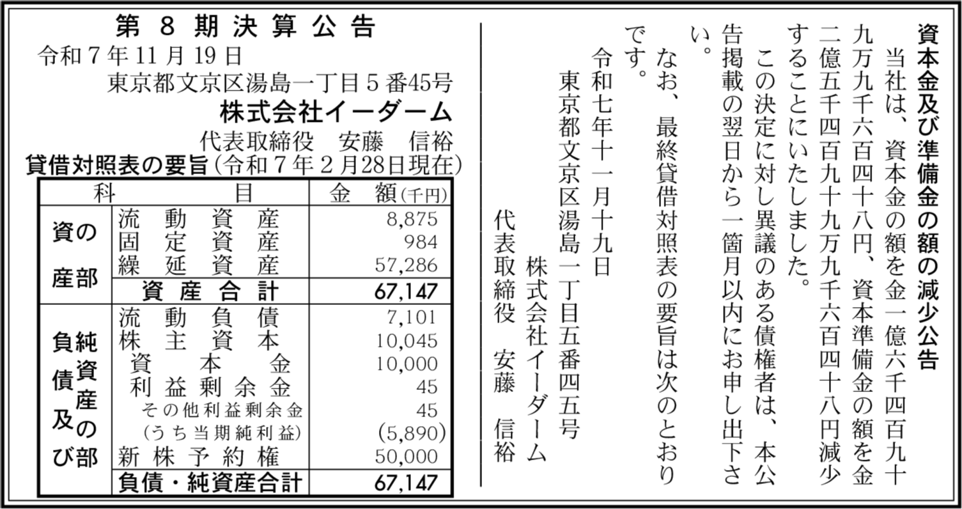 | 会社名 | 株式会社イーダーム |