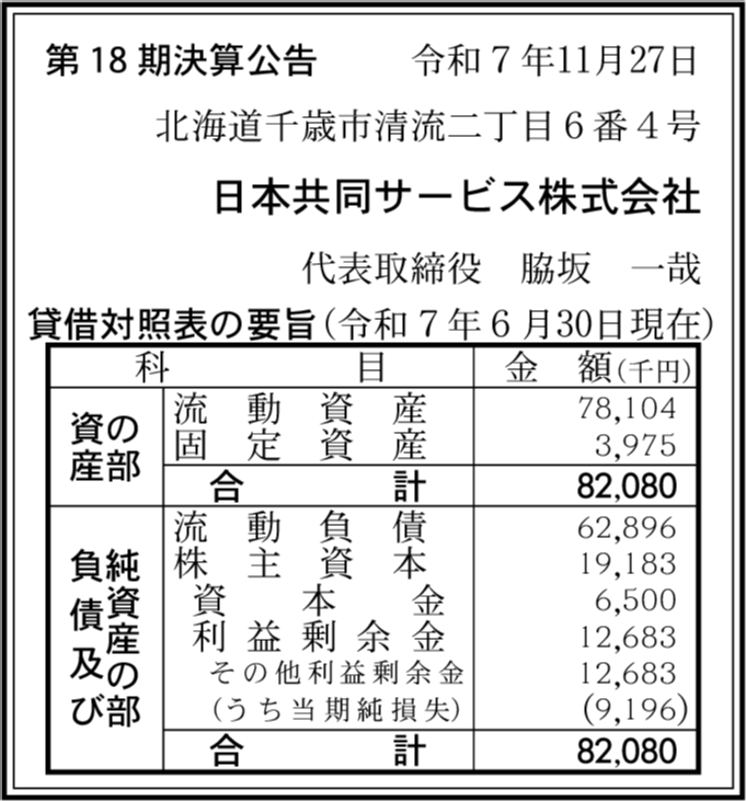 株式会社ミナモト 北海道千歳市 【2025年6月期】 |