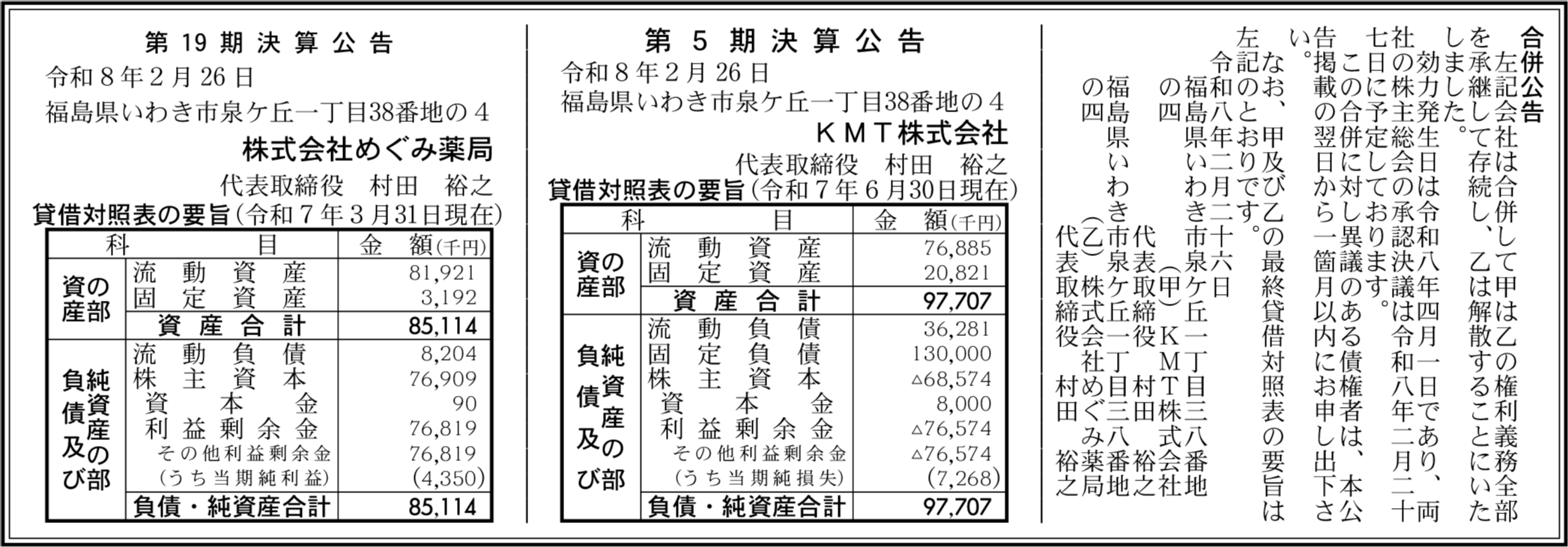 KMT株式会社 福島県いわき市 【2025年6月期】 |