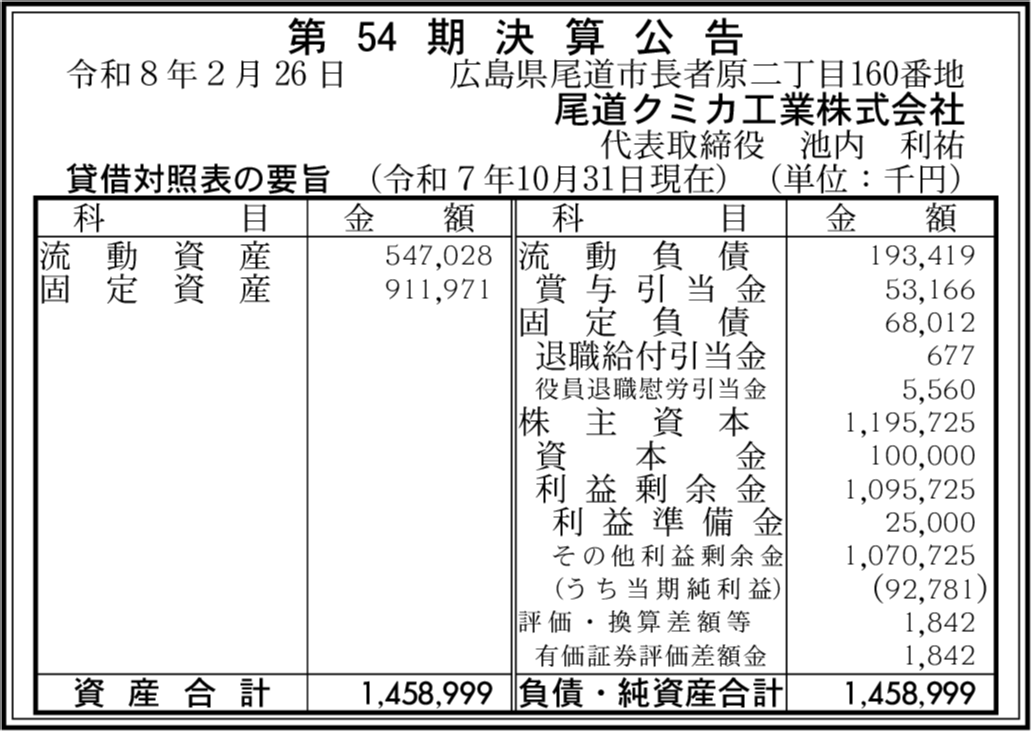 | 会社名 | 尾道クミカ工業株式会社 |