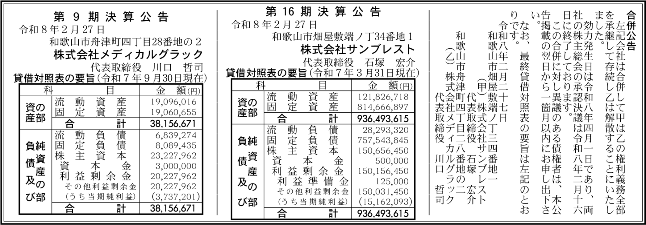 株式会社サンブレスト 和歌山市 【2025年3月期】 |