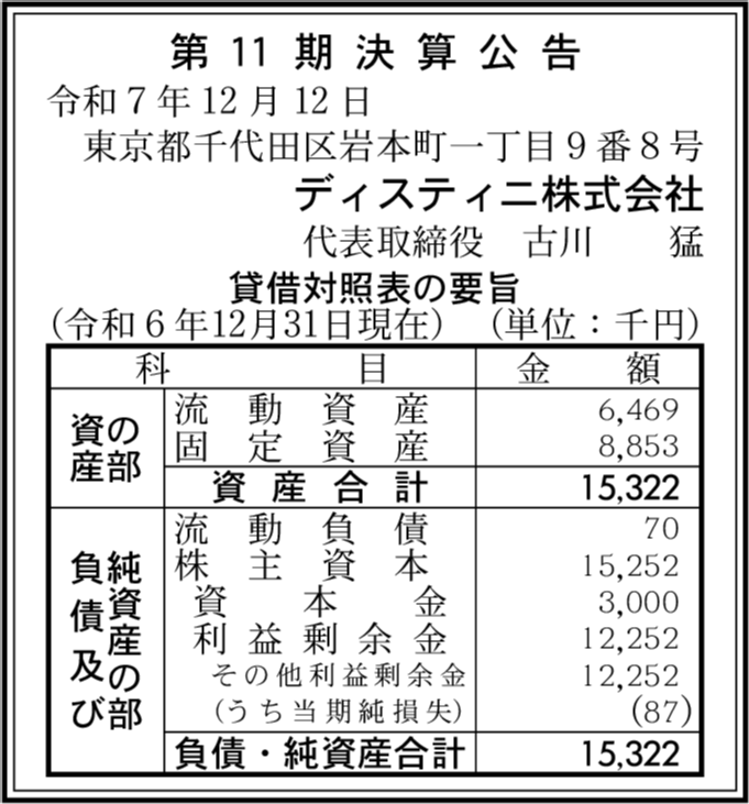 日本企業投資基盤株式会社 東京都千代田区 【2025年9月期】 |