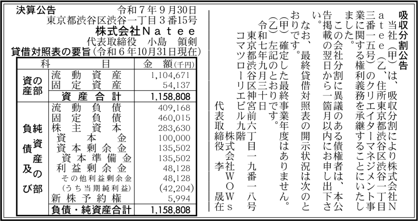 株式会社タイム・アンド・スペース 東京都渋谷区 【2025年2月期】 |