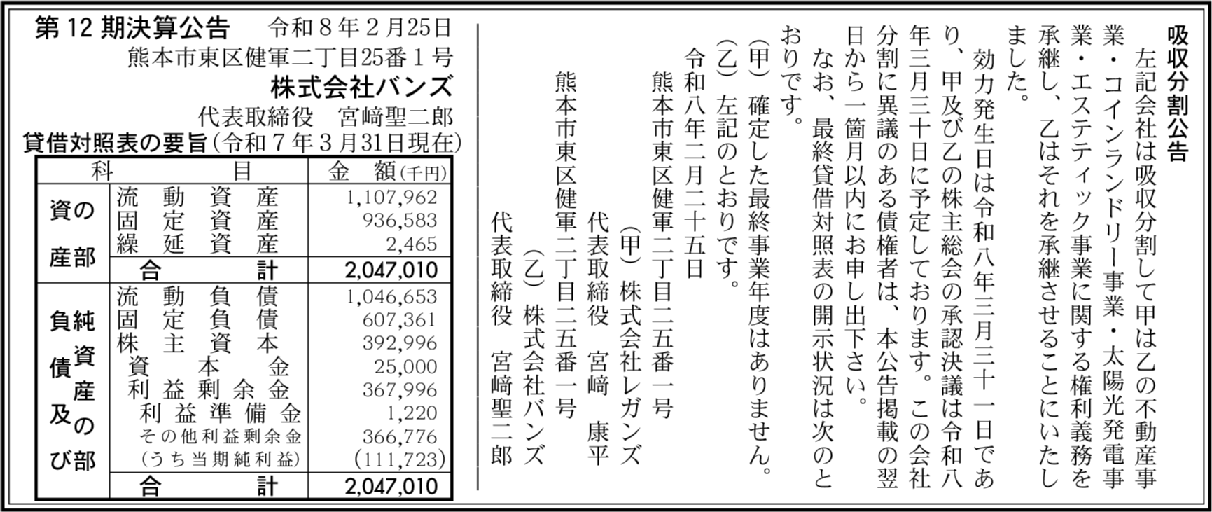 株式会社アントルメ菓樹R 熊本市東区 【2025年9月期】 |