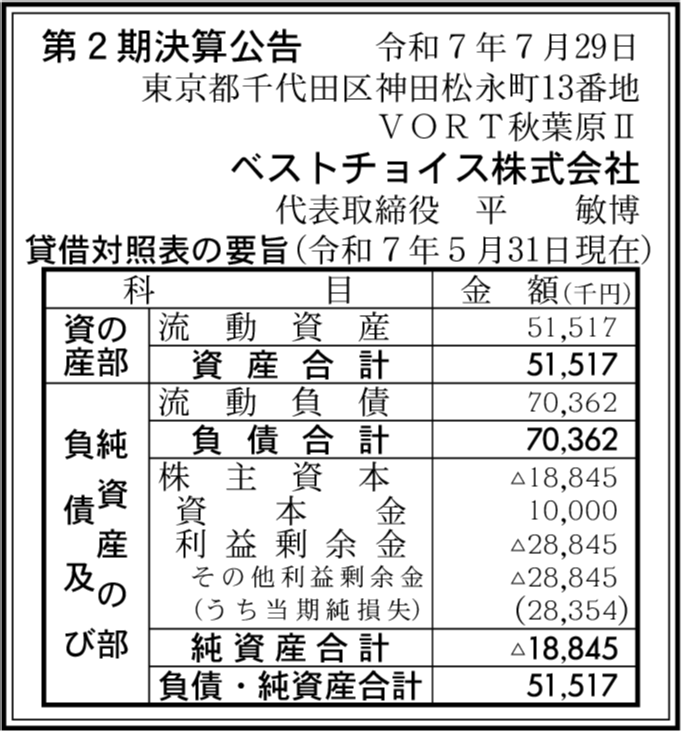 純利益 | △2,835万4,000円 (赤字拡大) |