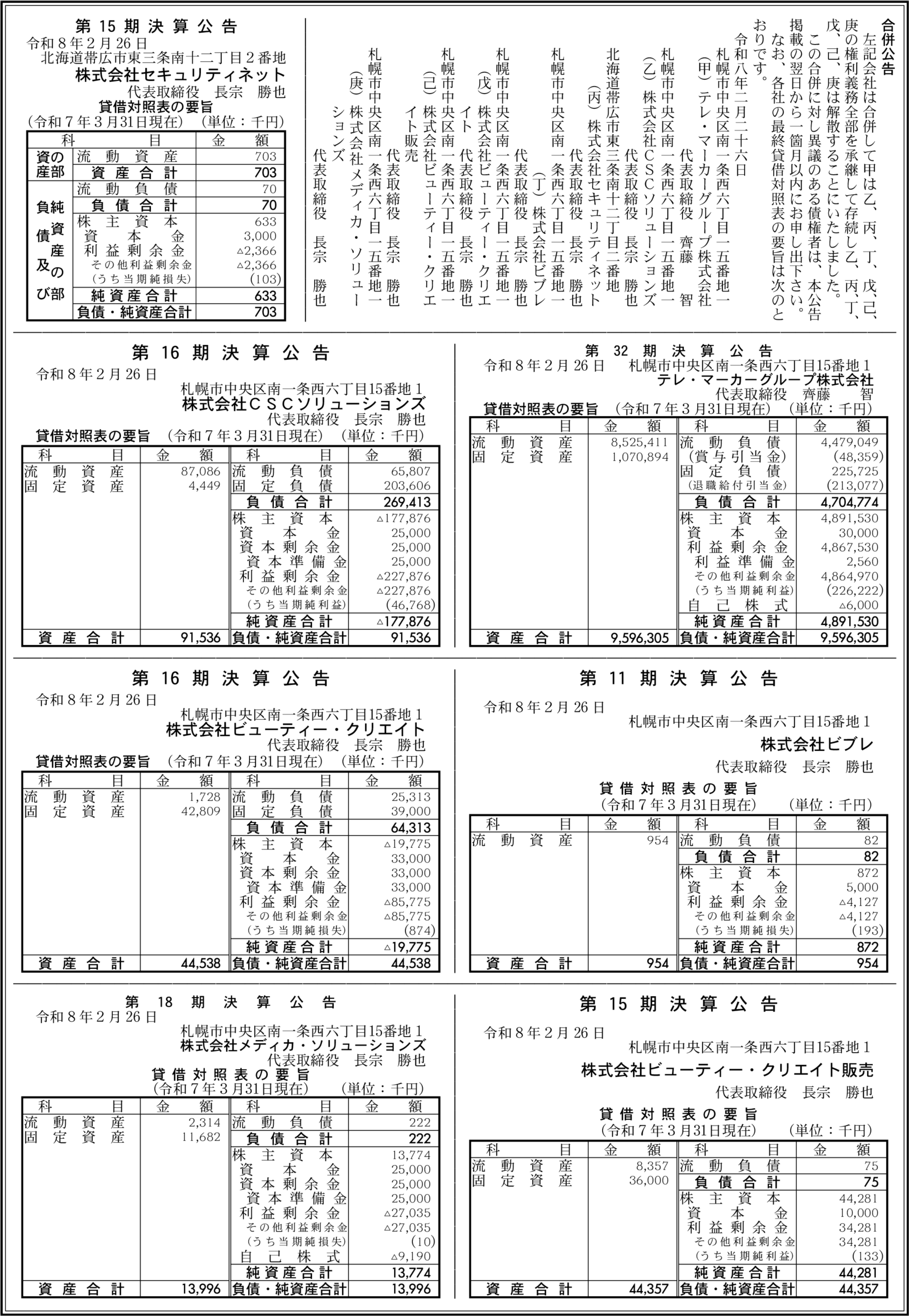 株式会社CSCソリューションズ 札幌市中央区 【2025年3月期】 |