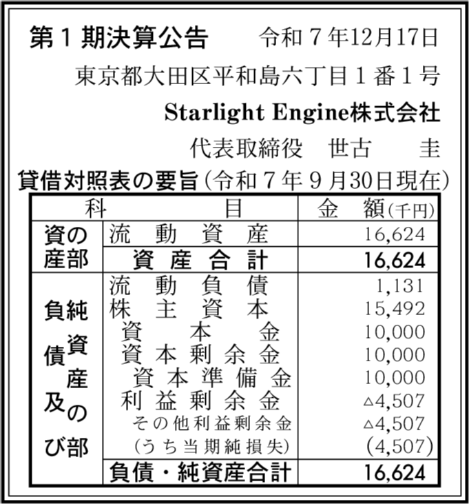 | 会社名 | Starlight Engine株式会社 |