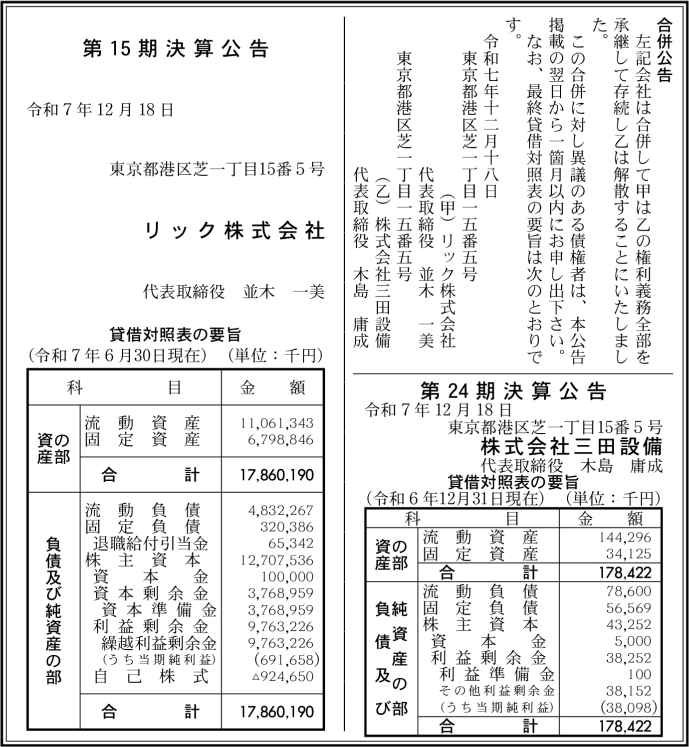 株式会社三田設備 東京都港区 【2024年12月期】 |