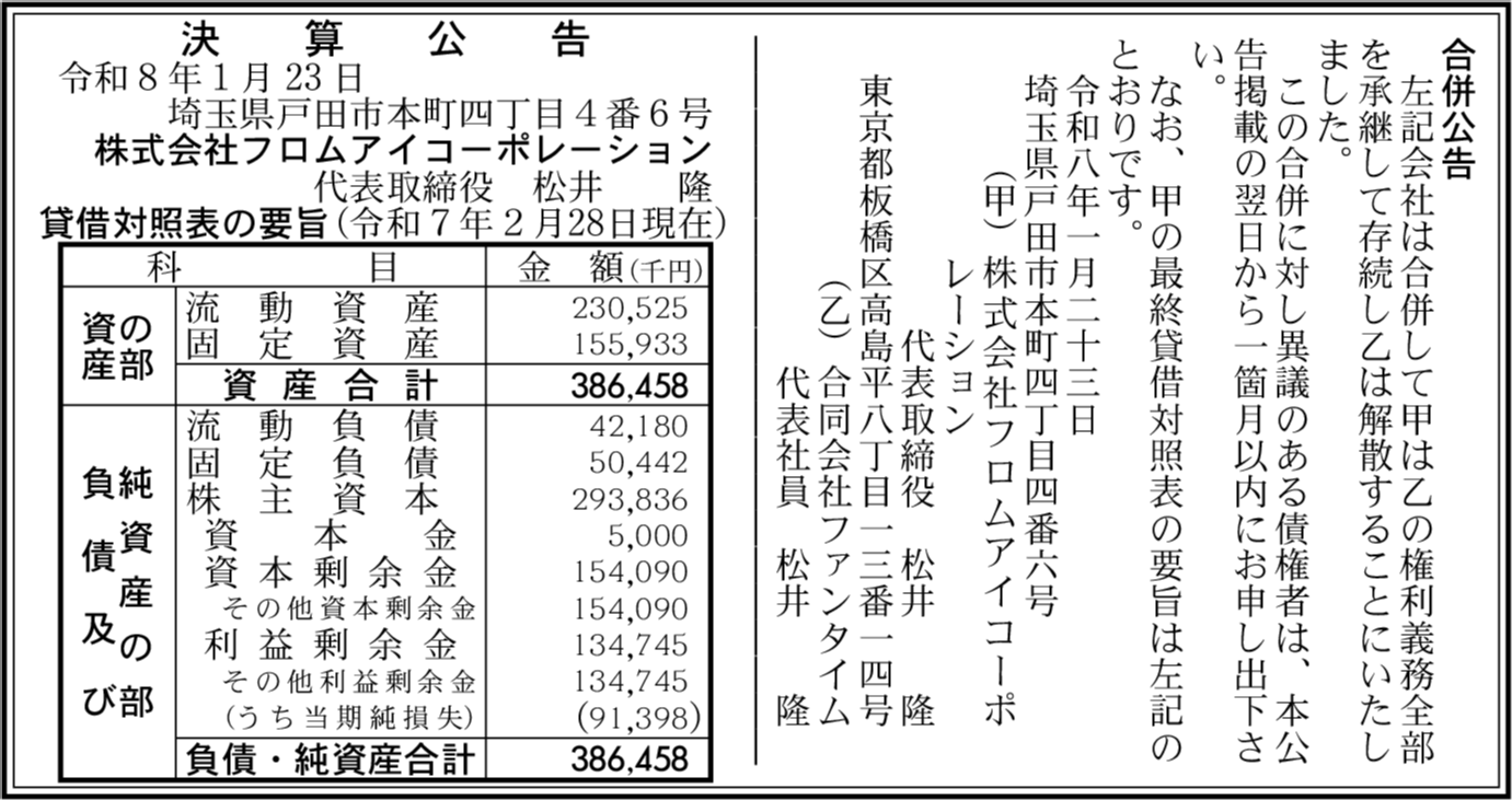 | 会社名 | 株式会社フロムアイコーポレーション |