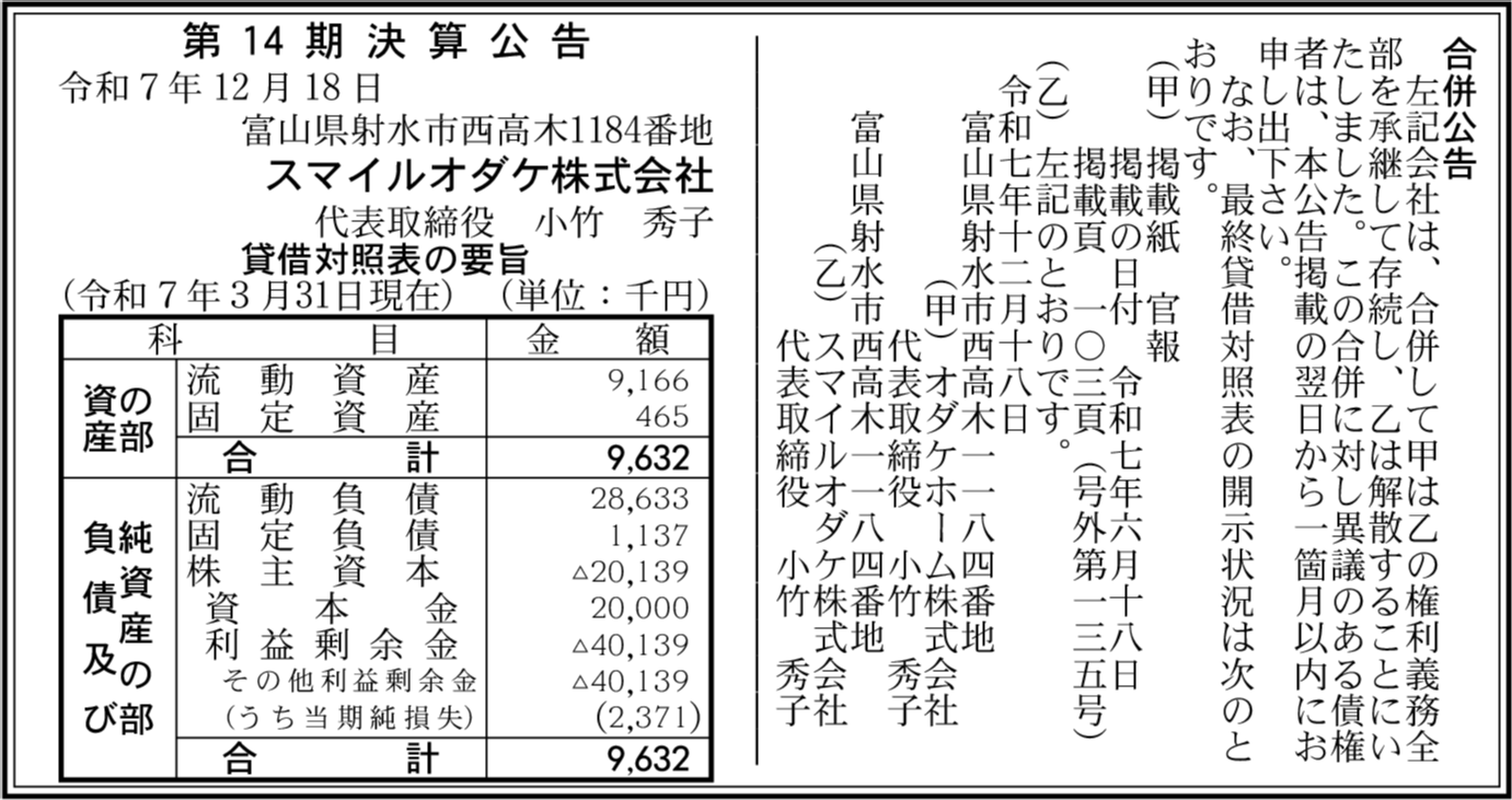 オダケホーム株式会社 富山県射水市 【2025年3月期】 |
