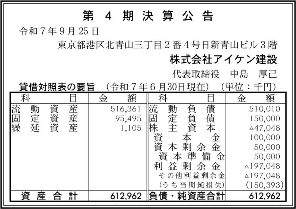 株式会社アイケンリアルエステート 福岡市中央区 【2025年6月期】 |