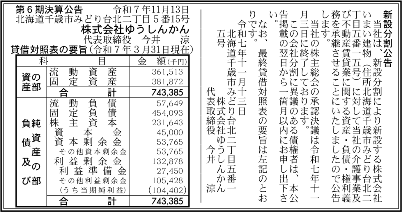 | 会社名 | 株式会社ゆうしんかん |