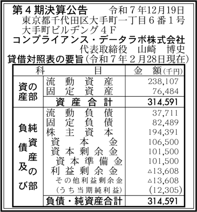 | 会社名 | コンプライアンス・データラボ株式会社 |