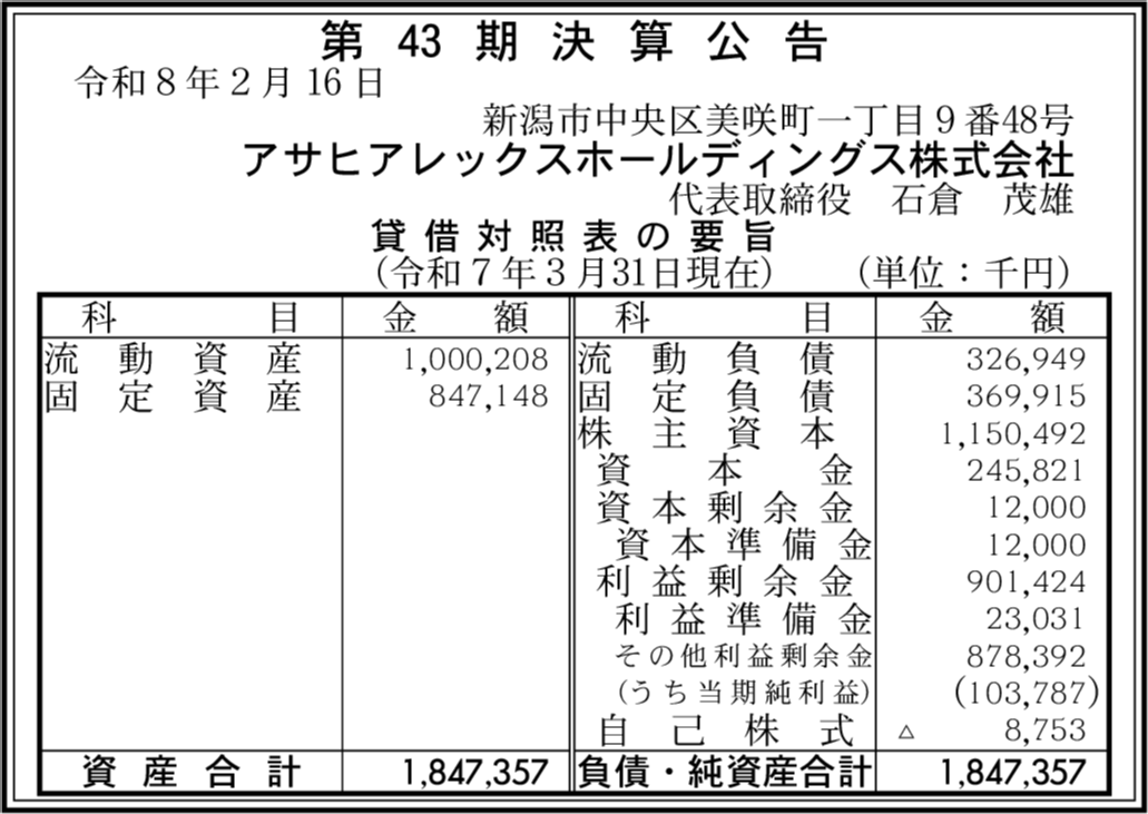 アサヒアーキテクト株式会社閉鎖済み 新潟市中央区 【2020年3月期】 |