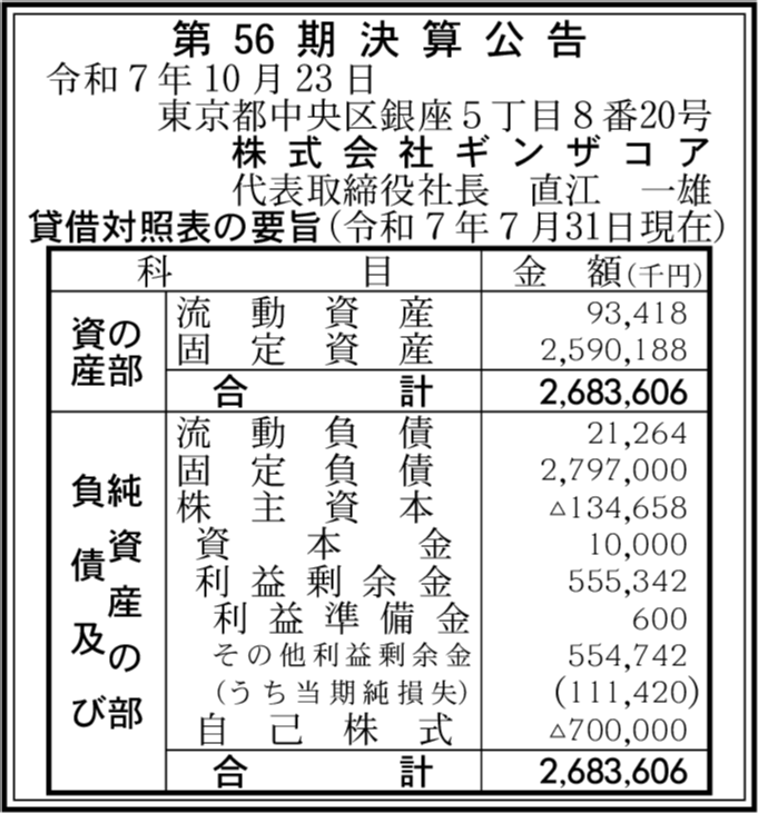 | 会社名 | 株式会社ギンザコア |