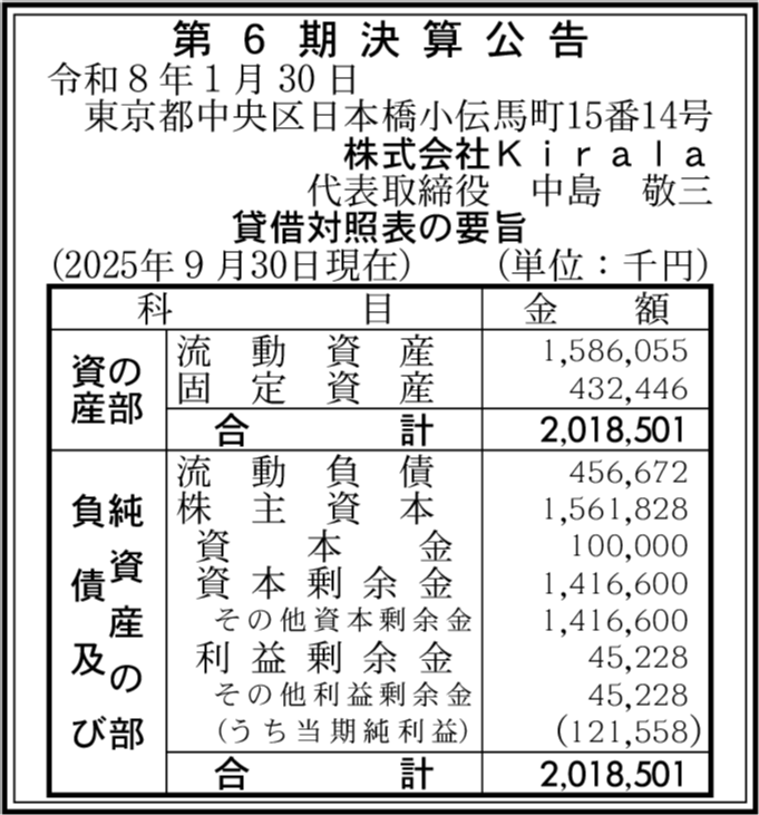 | 会社名 | 株式会社Kirala |