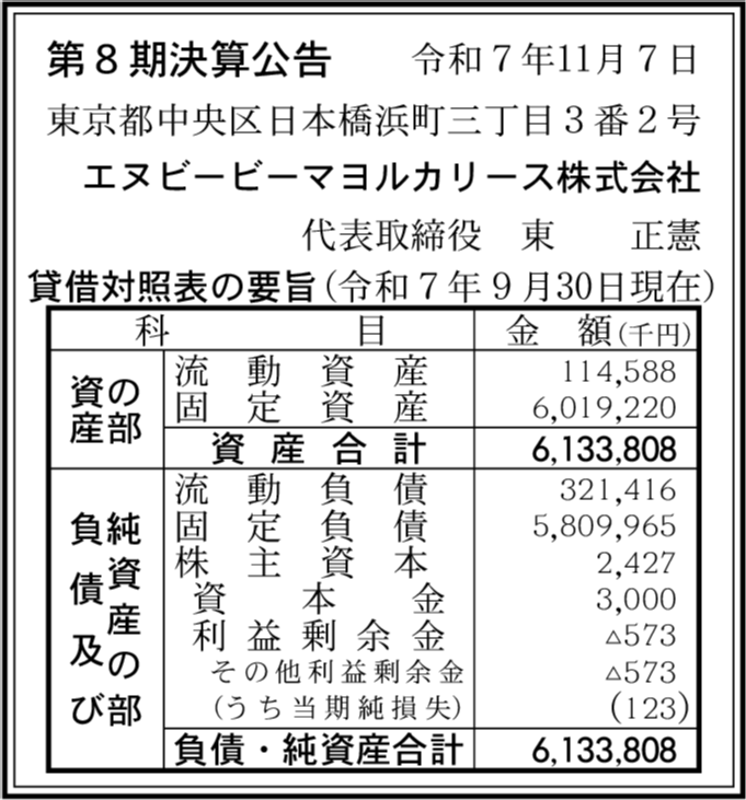 エヌビービーラッフルズプレイスリース株式会社 東京都中央区 【2025年9月期】 |