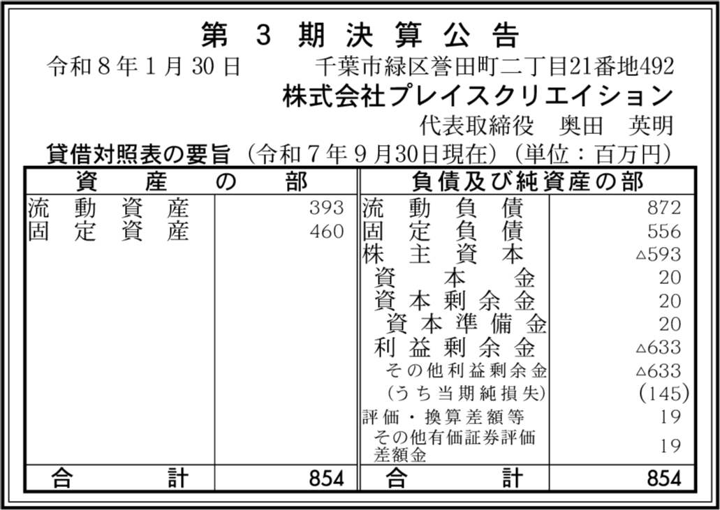 | 総資産 | 8億5,400万円 (▲15.86%) |
