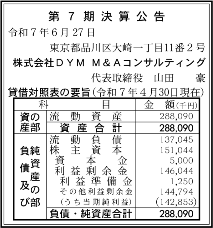 株式会社DYM 東京都品川区 【2025年4月期】 |