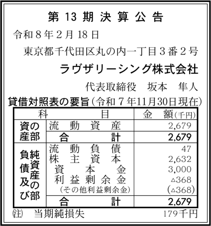 | 会社名 | ラヴザリーシング株式会社 |