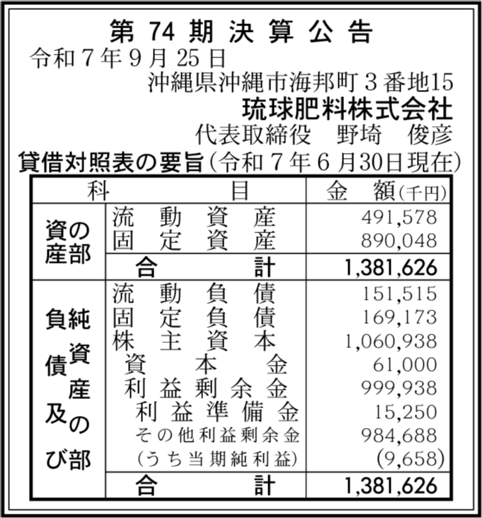 拓南製鐵株式会社 沖縄県沖縄市 【2025年3月期】 |