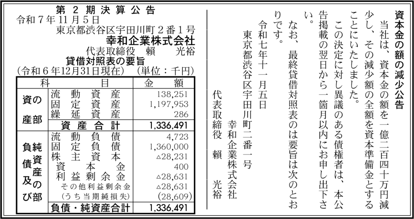 | 会社名 | 幸和企業株式会社 |