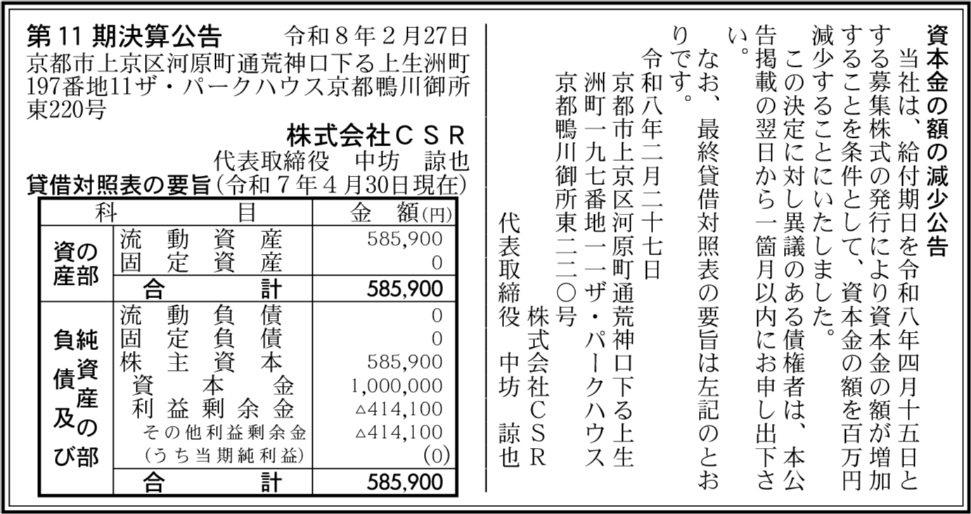| 会社名 | 株式会社CSR |